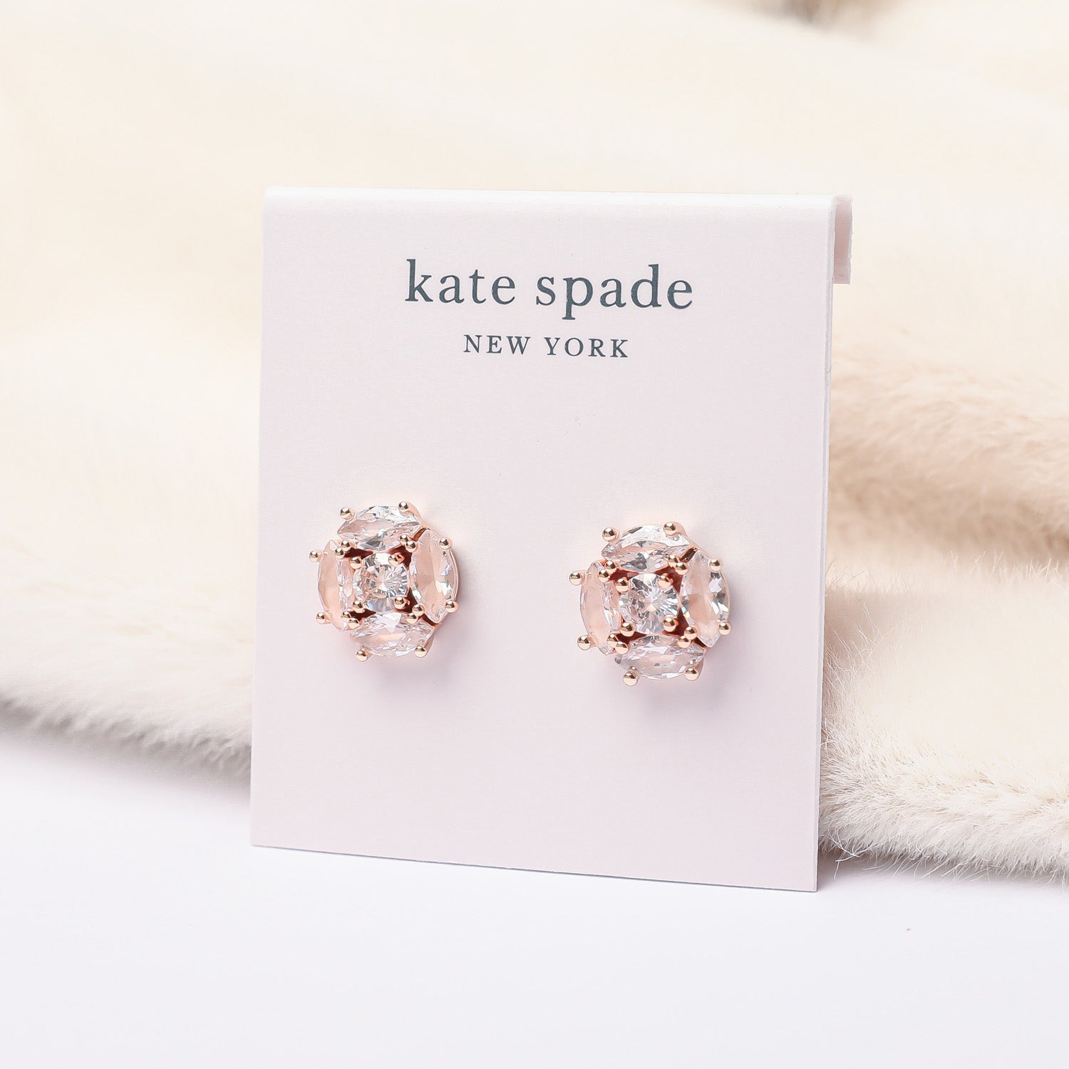 Kate Spade “Flying Colors” Marquise Cluster Stud Earrings in Clear/Rose Gold