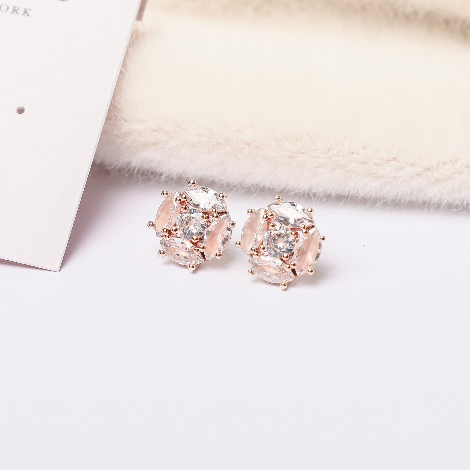Rose Gold-Tone Crystal Cluster Stud Earrings