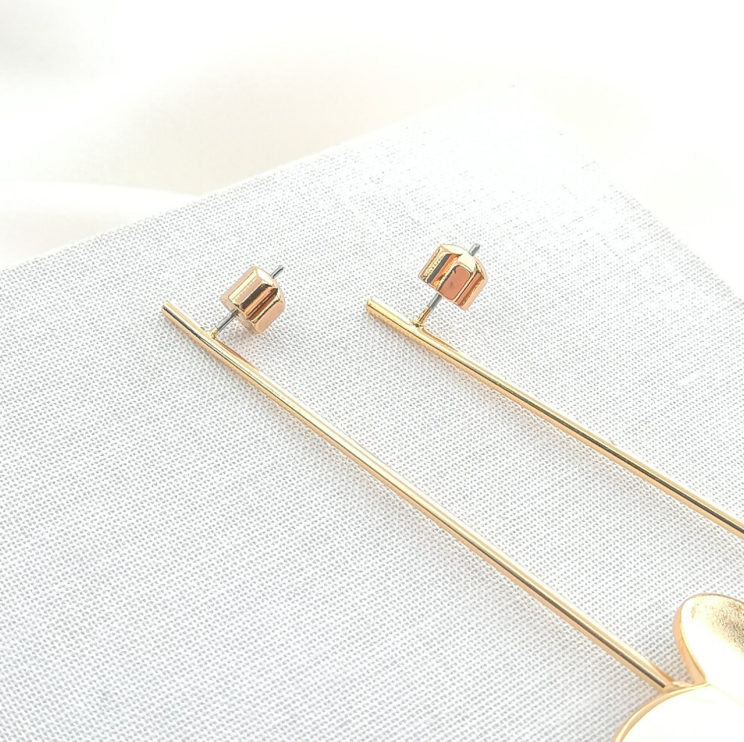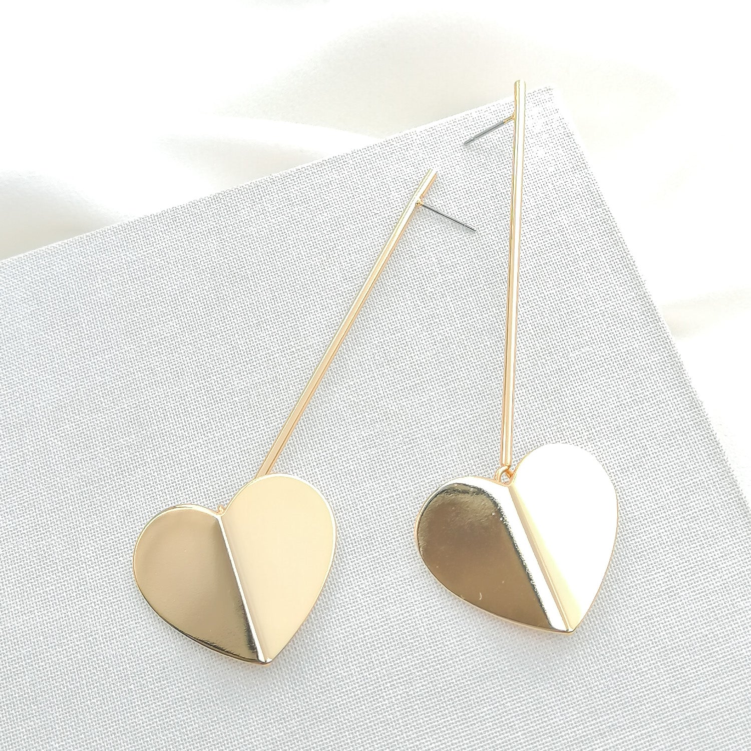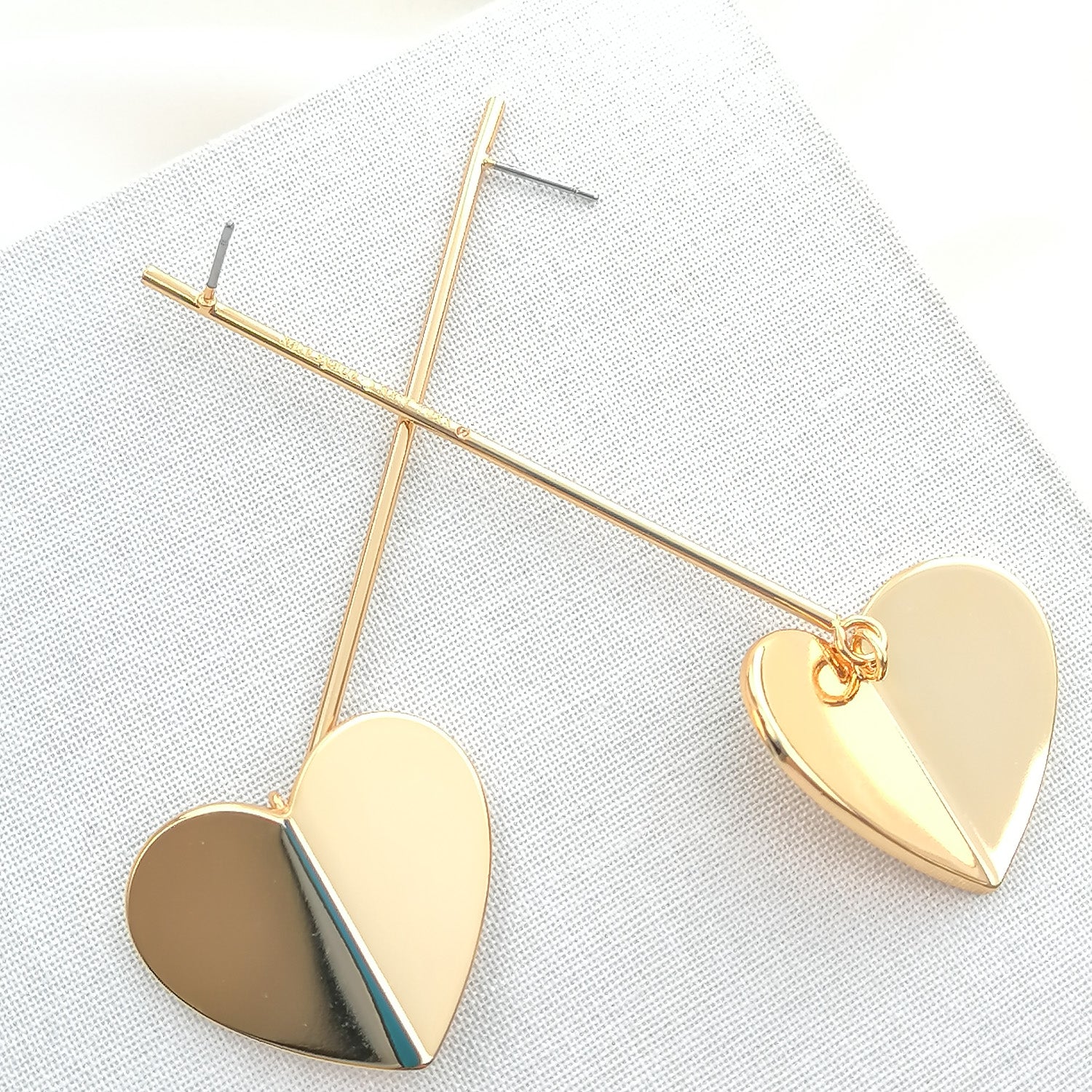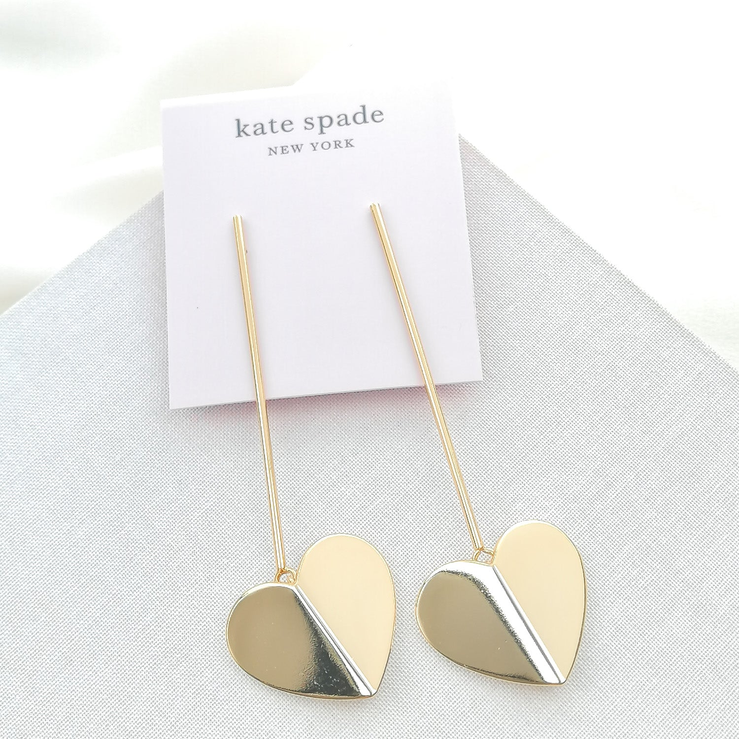 we took a shiny, faceted metal heart and suspended it from a slender bar creating a piece that is instantly noticeable and just a touch edgy. you can wear the earrings together, one at a time or matched with a heart stud for a touch pop of color. totally up to you. the cute spade closure keeps them securely in place.
