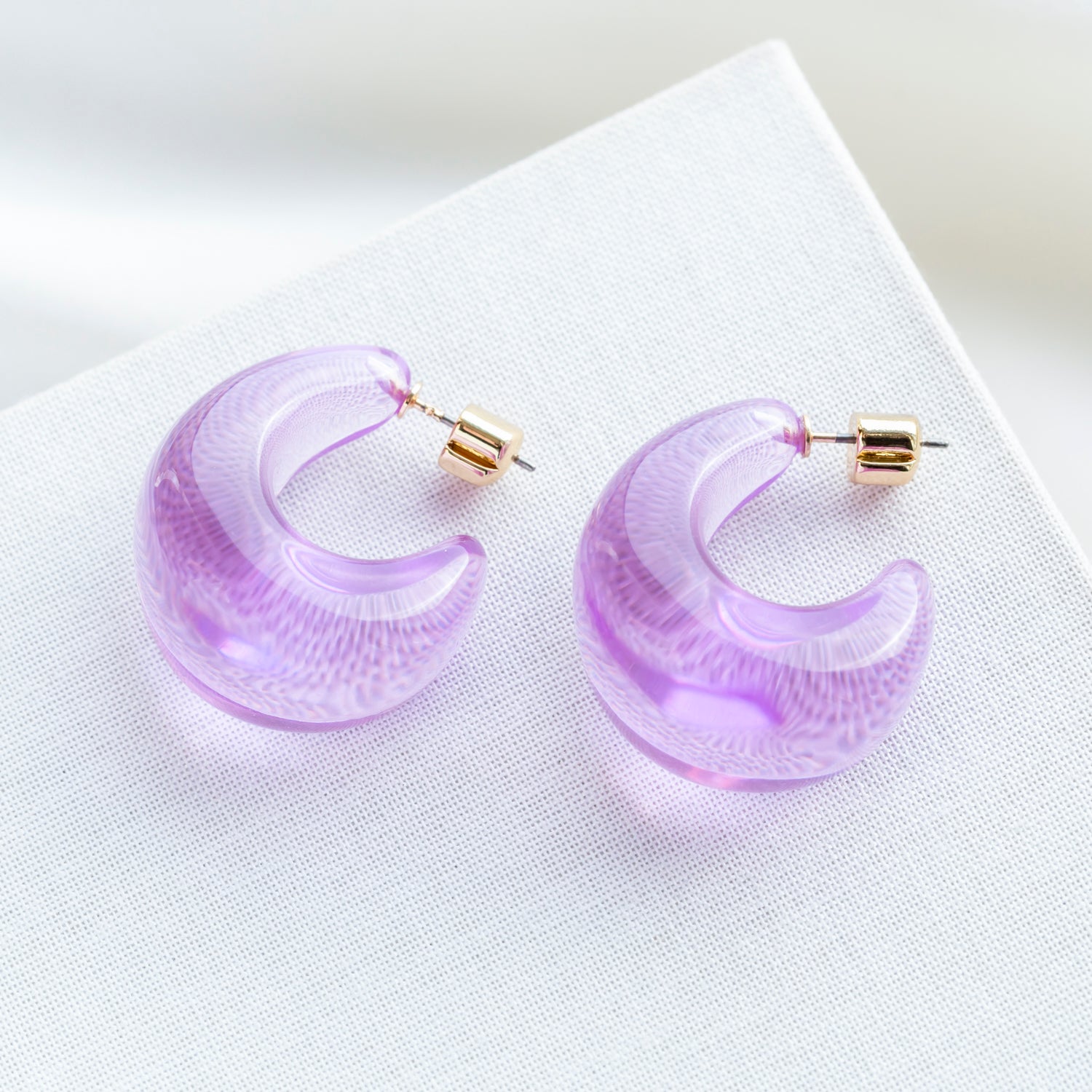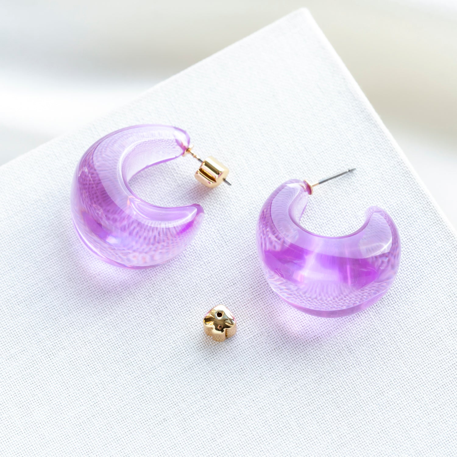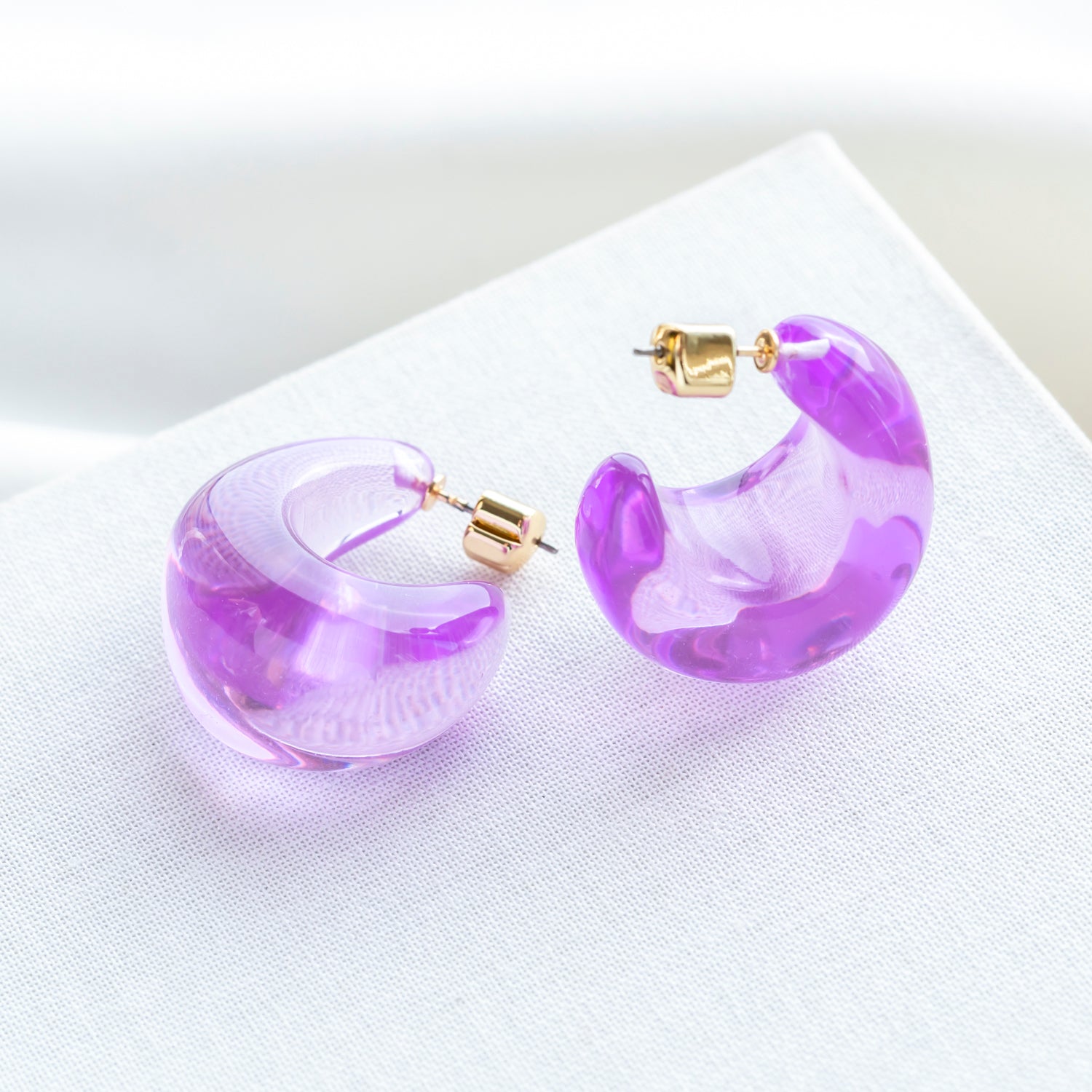 these are those earrings for when you need that extra pop of color. (because why not?) our adore-ables huggies are made from a glossy resin that comes in so many gorgeous shades. they dress up everything from tees and jeans to blouses and skirts. pjs, too, if that's what you prefer.