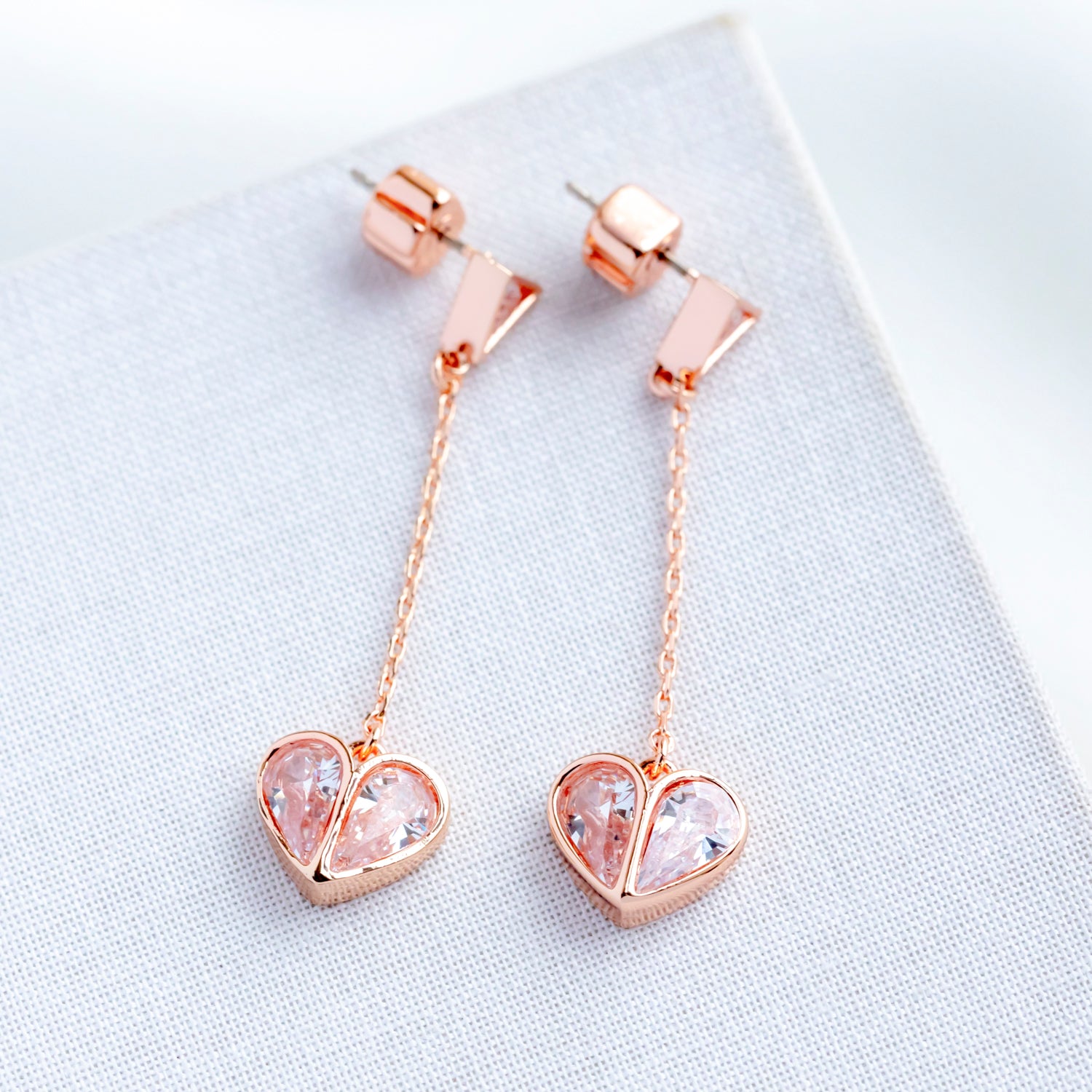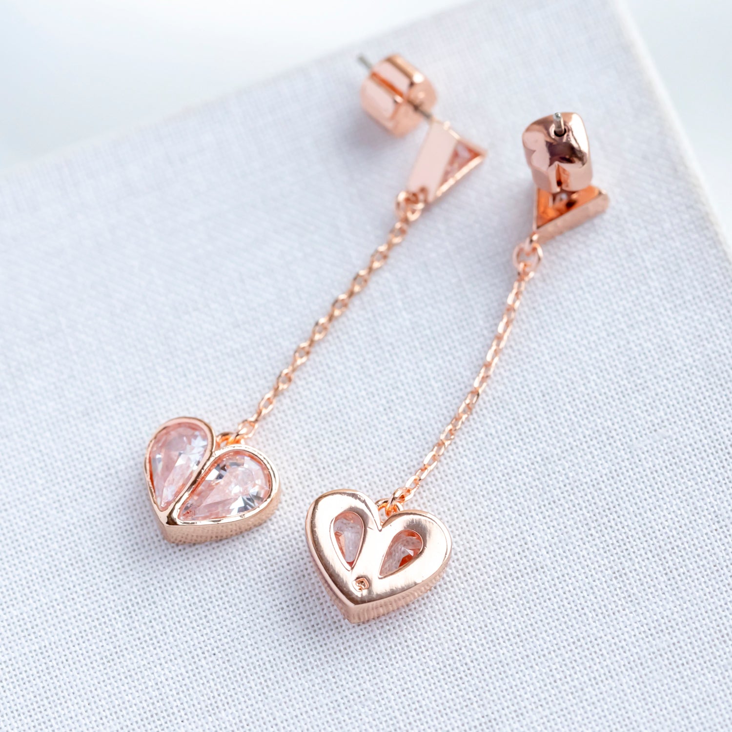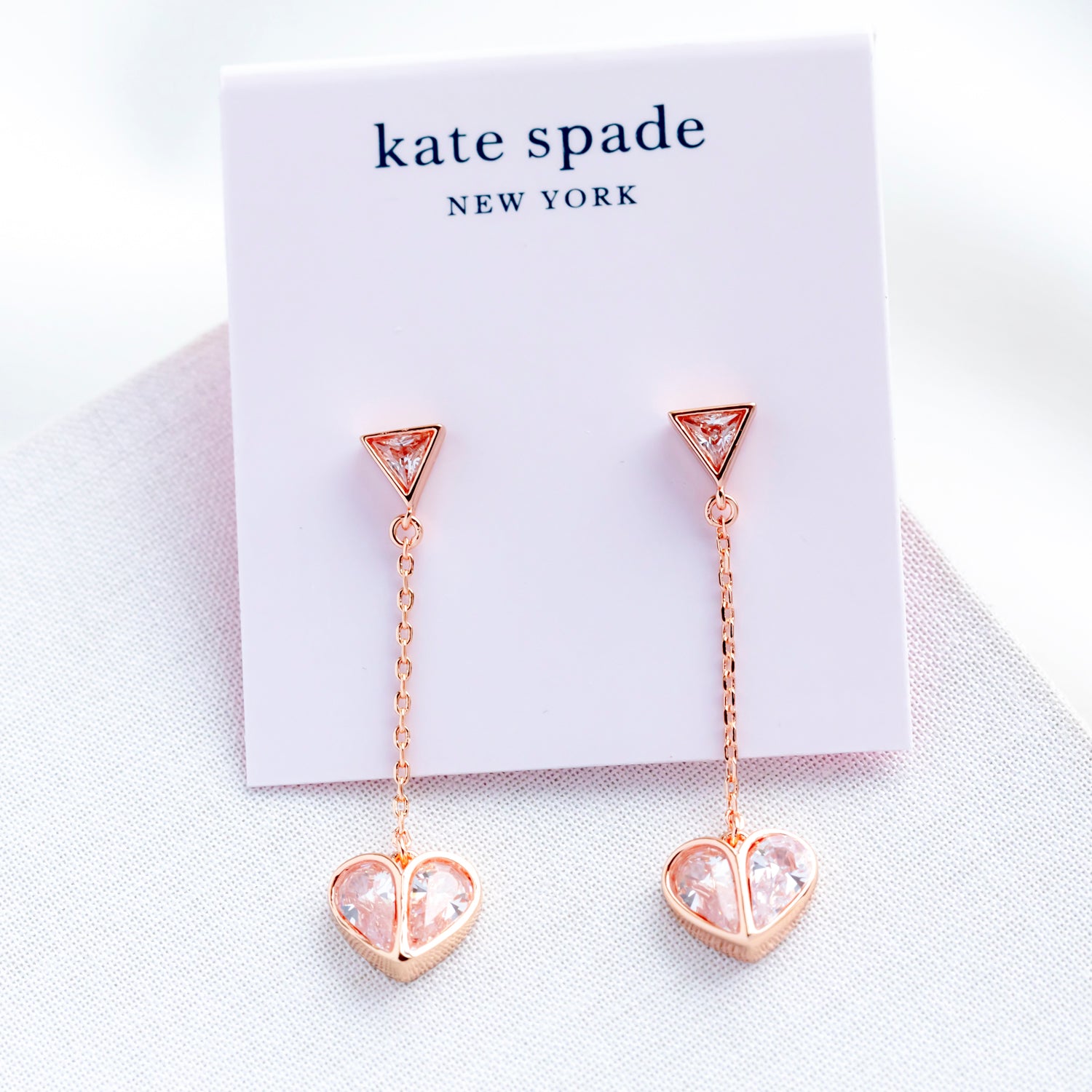 handcrafted of gold-tone metal, our rock solid drop earrings are embellished at the ends with two of our signatures: a heart and the tip of our spade. we punctuated them with sparkling faceted crystals for the finishing touch.
