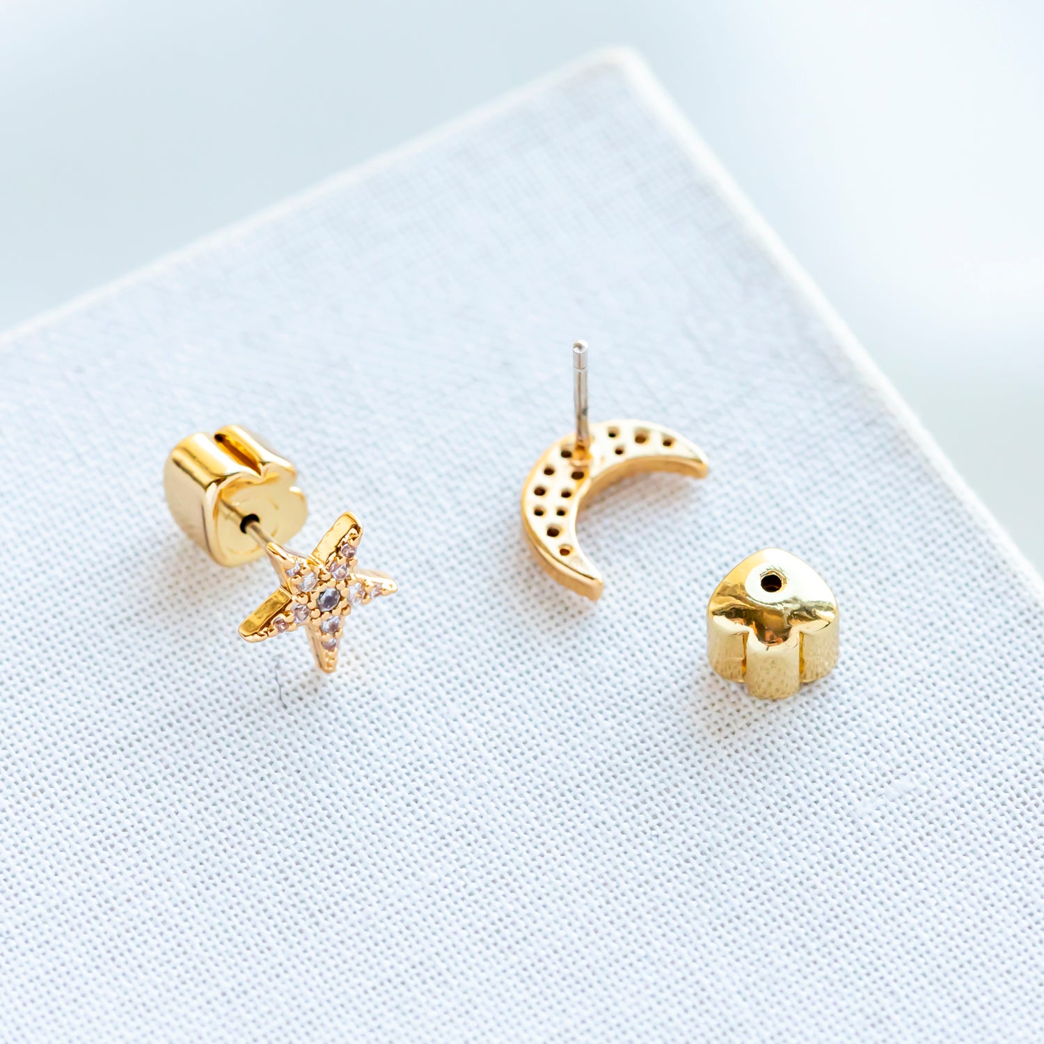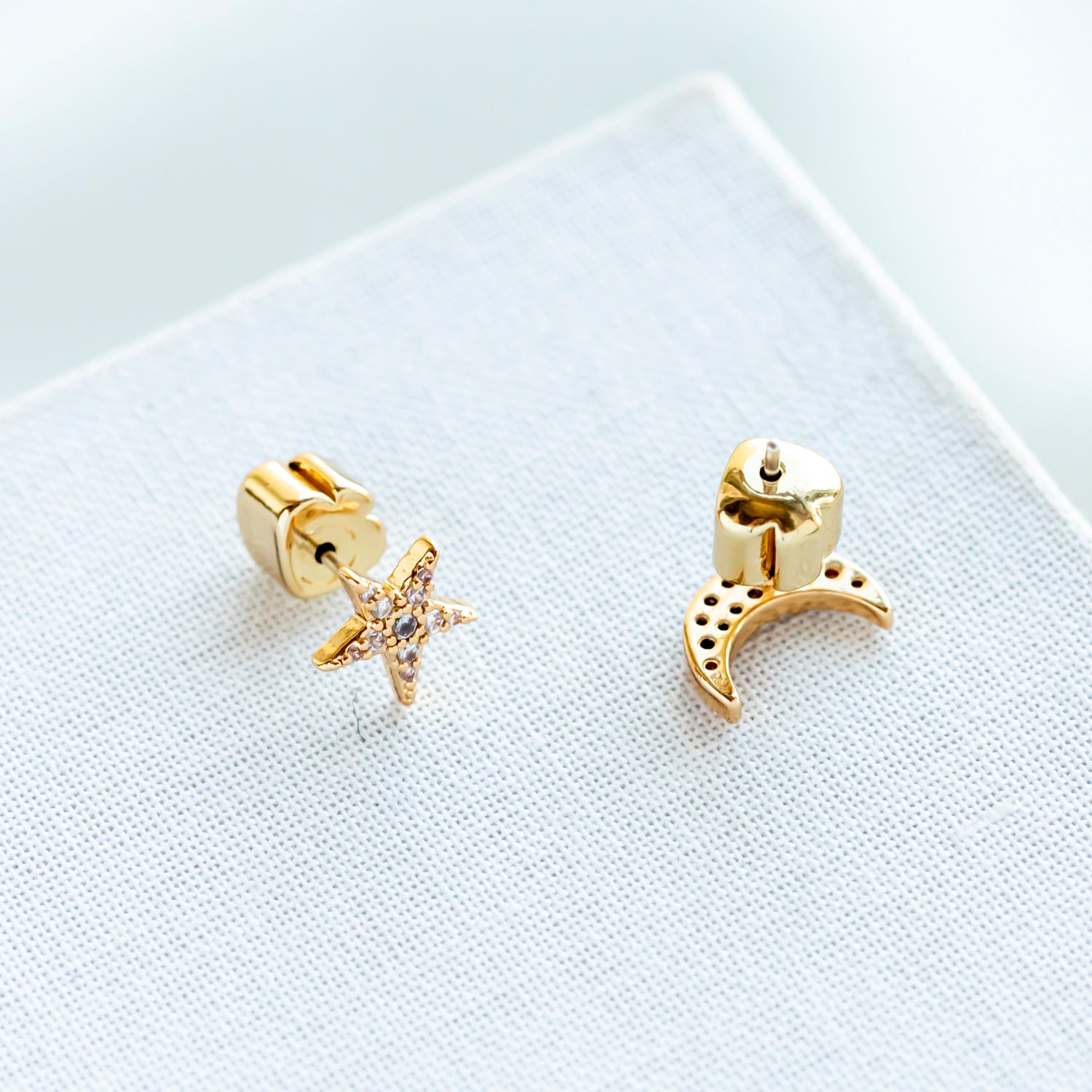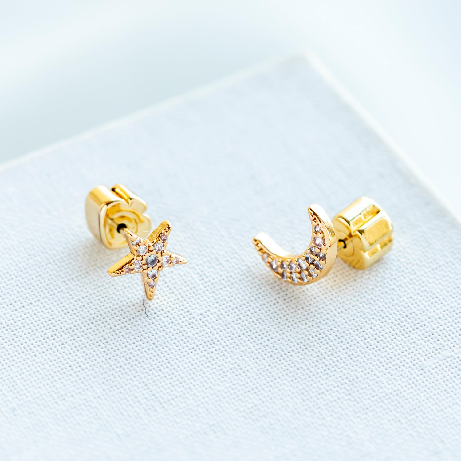 Something Sparkly Pave Star & Moon Stud Earrings