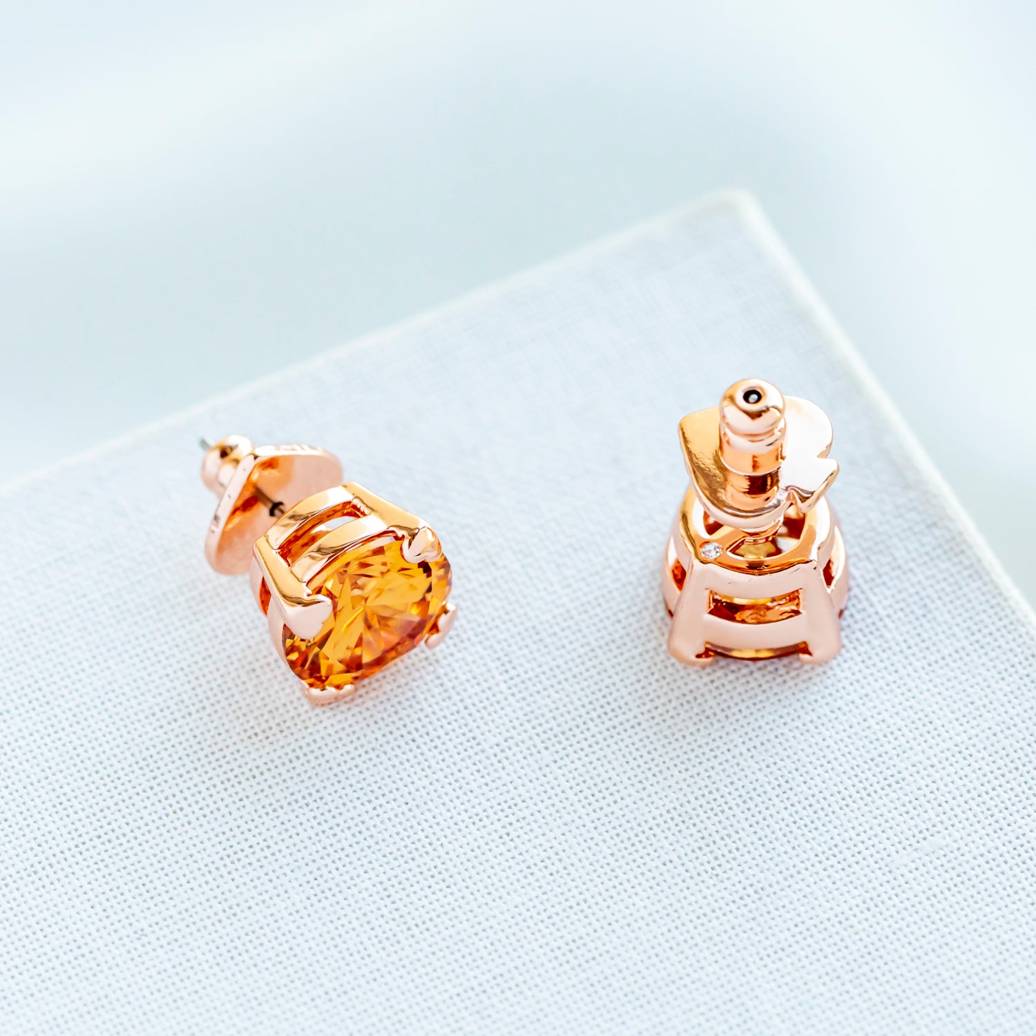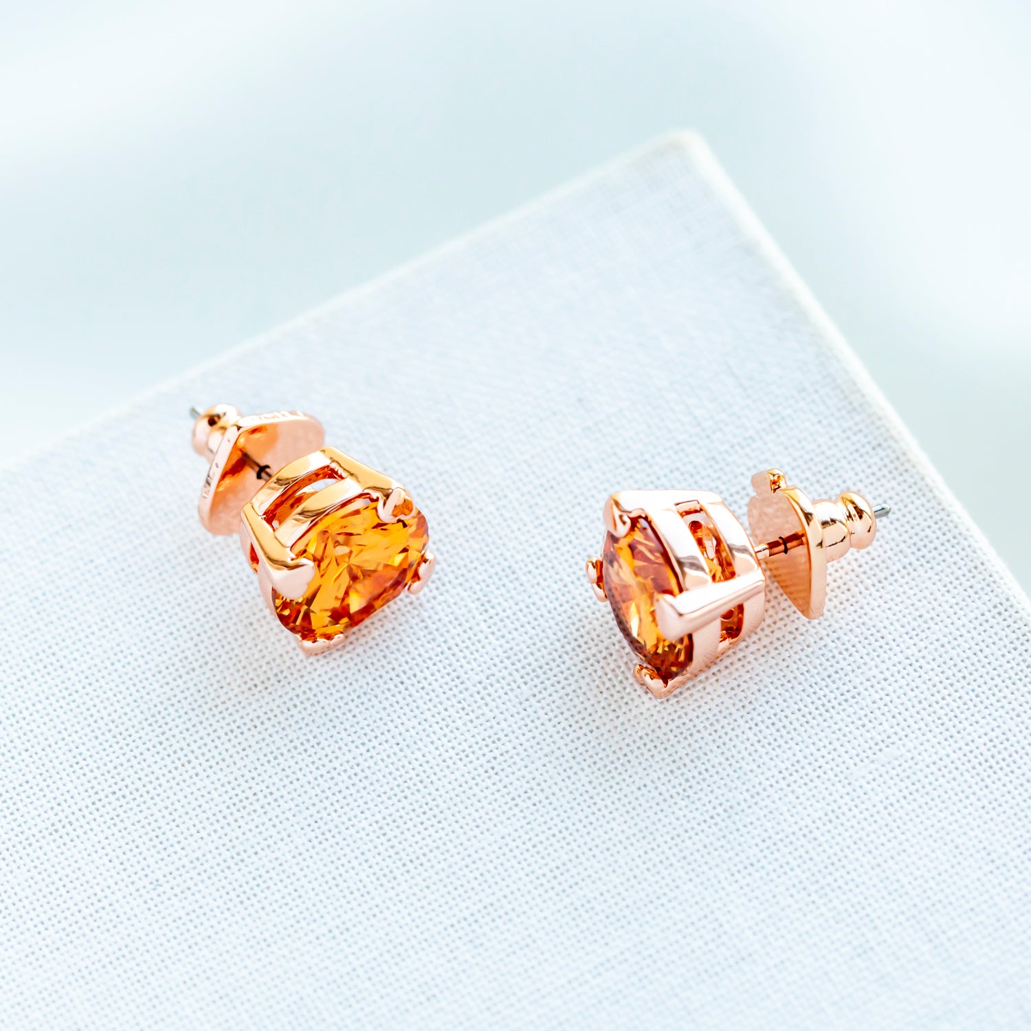 these sparkling earrings boast small crystals and are accented with mini golden hearts at the sides. love.