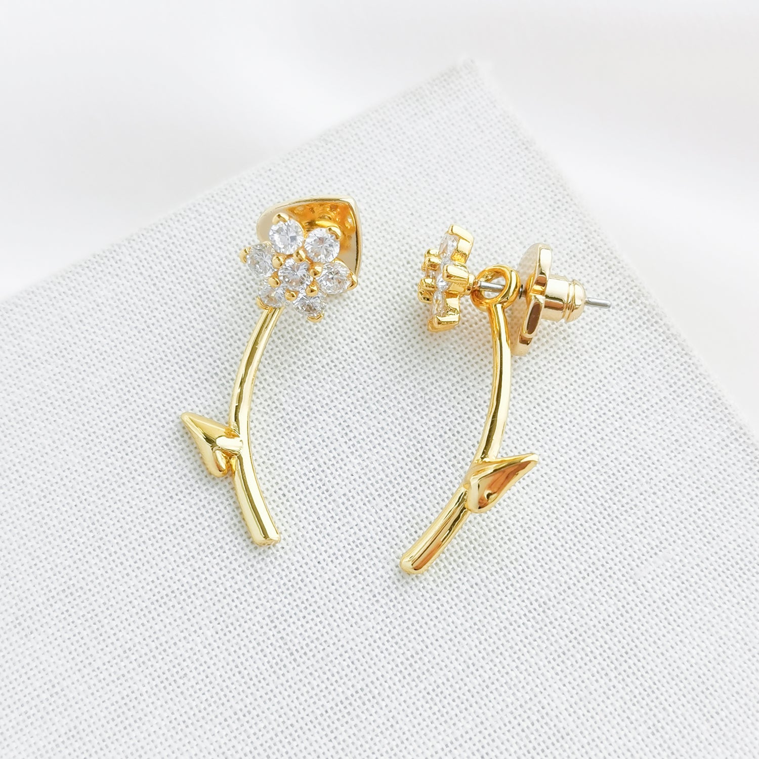 Myosotis Flower Ear Jacket Earrings (Clear)