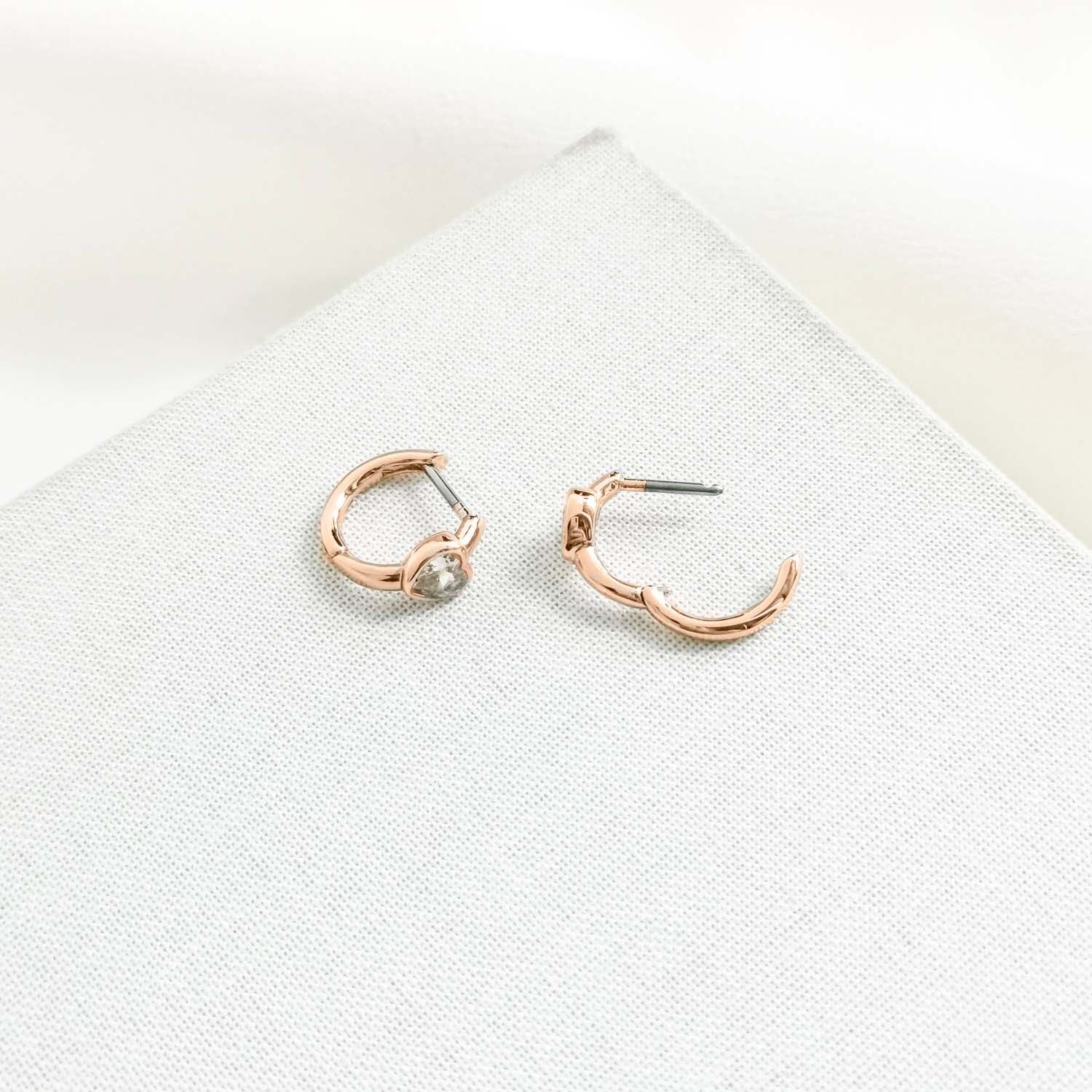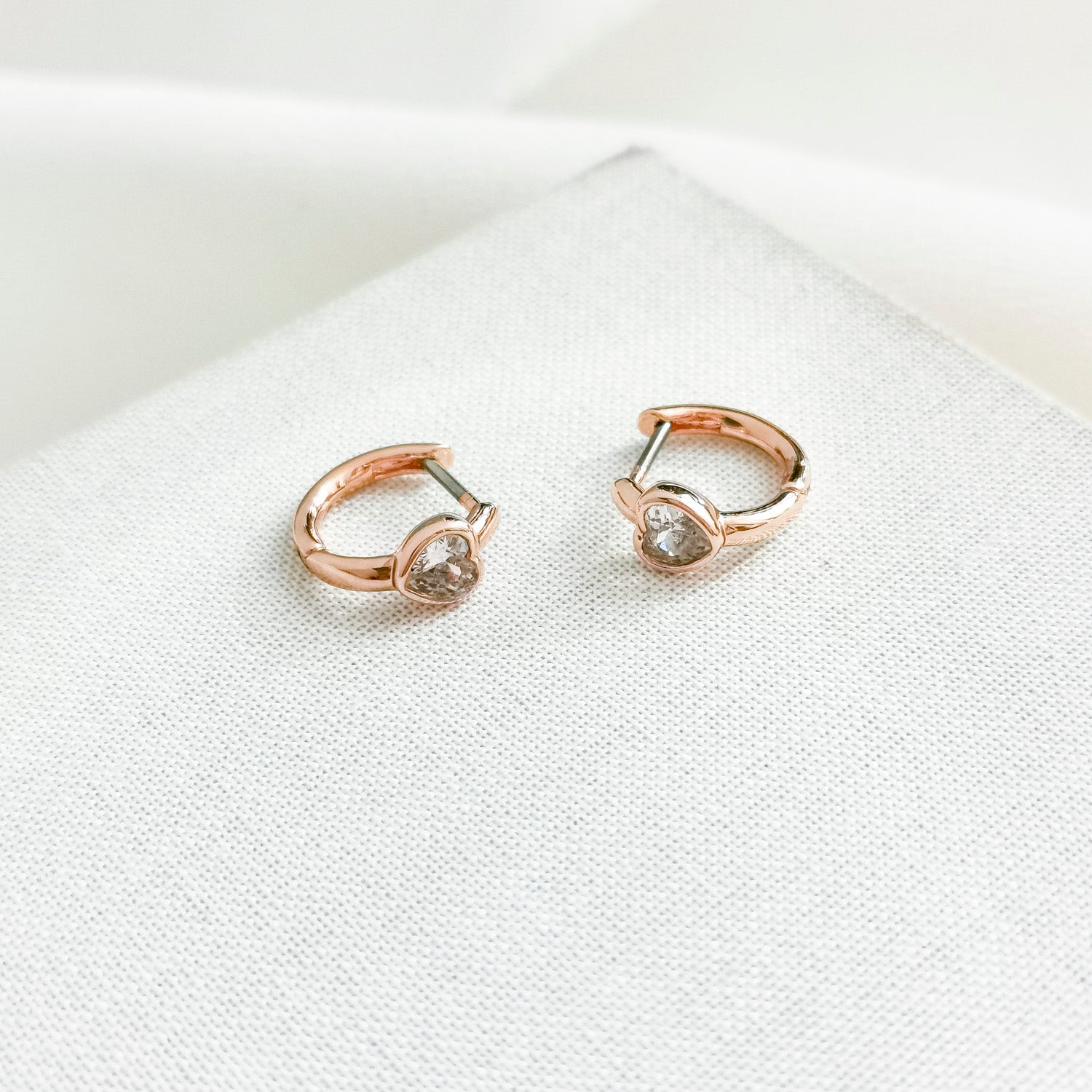 Tiny Twinkles Love Heart Rose Gold Huggie Earrings