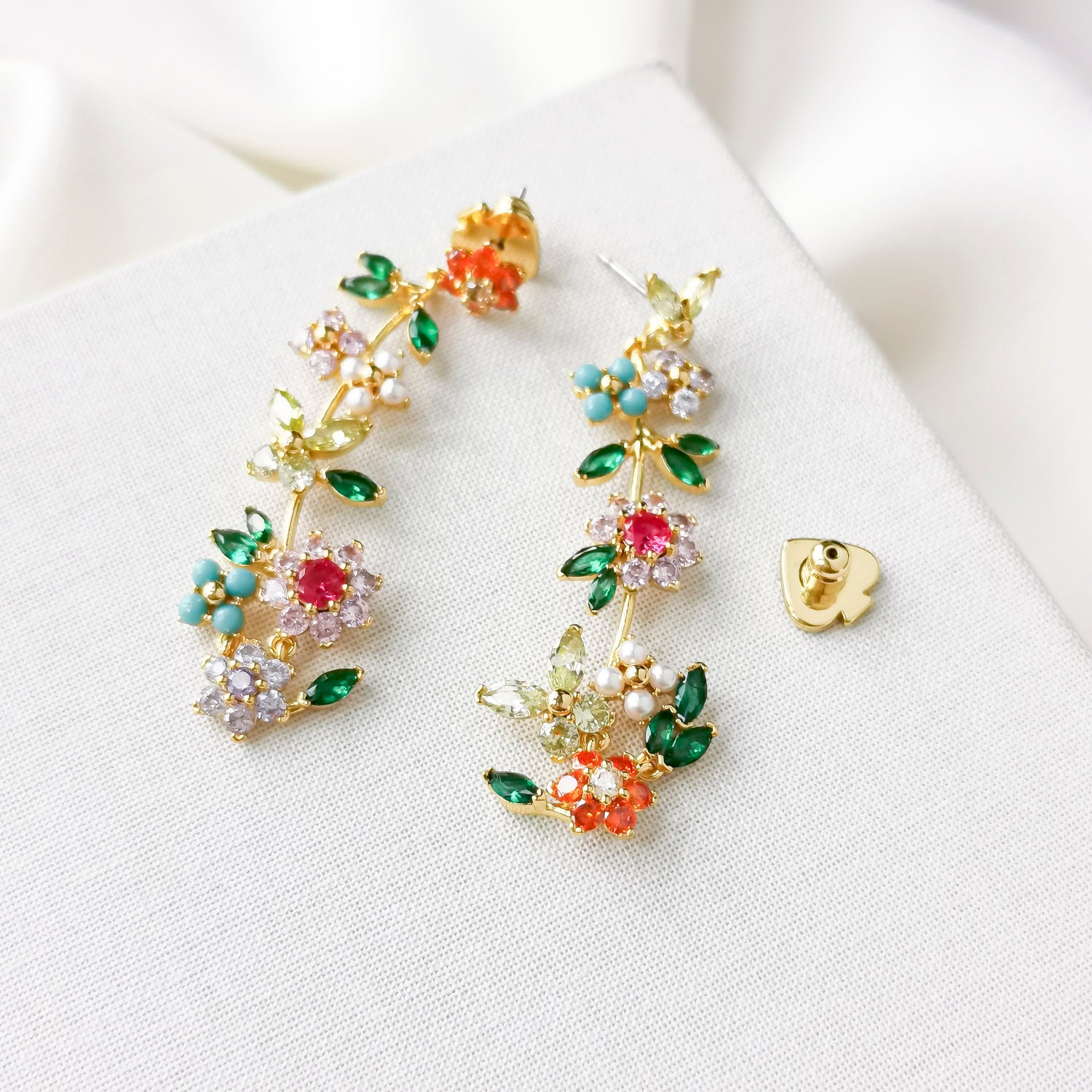 though few things can rival the beauty of spring's first bloom, this jewel and faux pearl floral statement earrings are a close second...