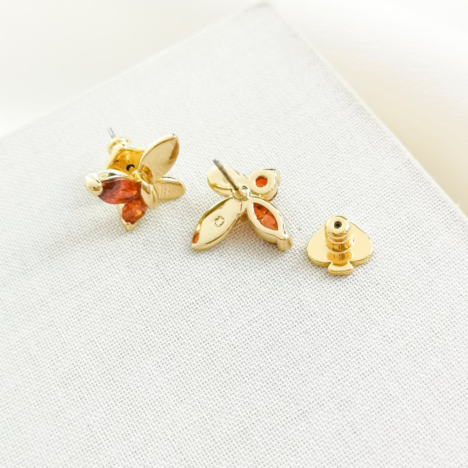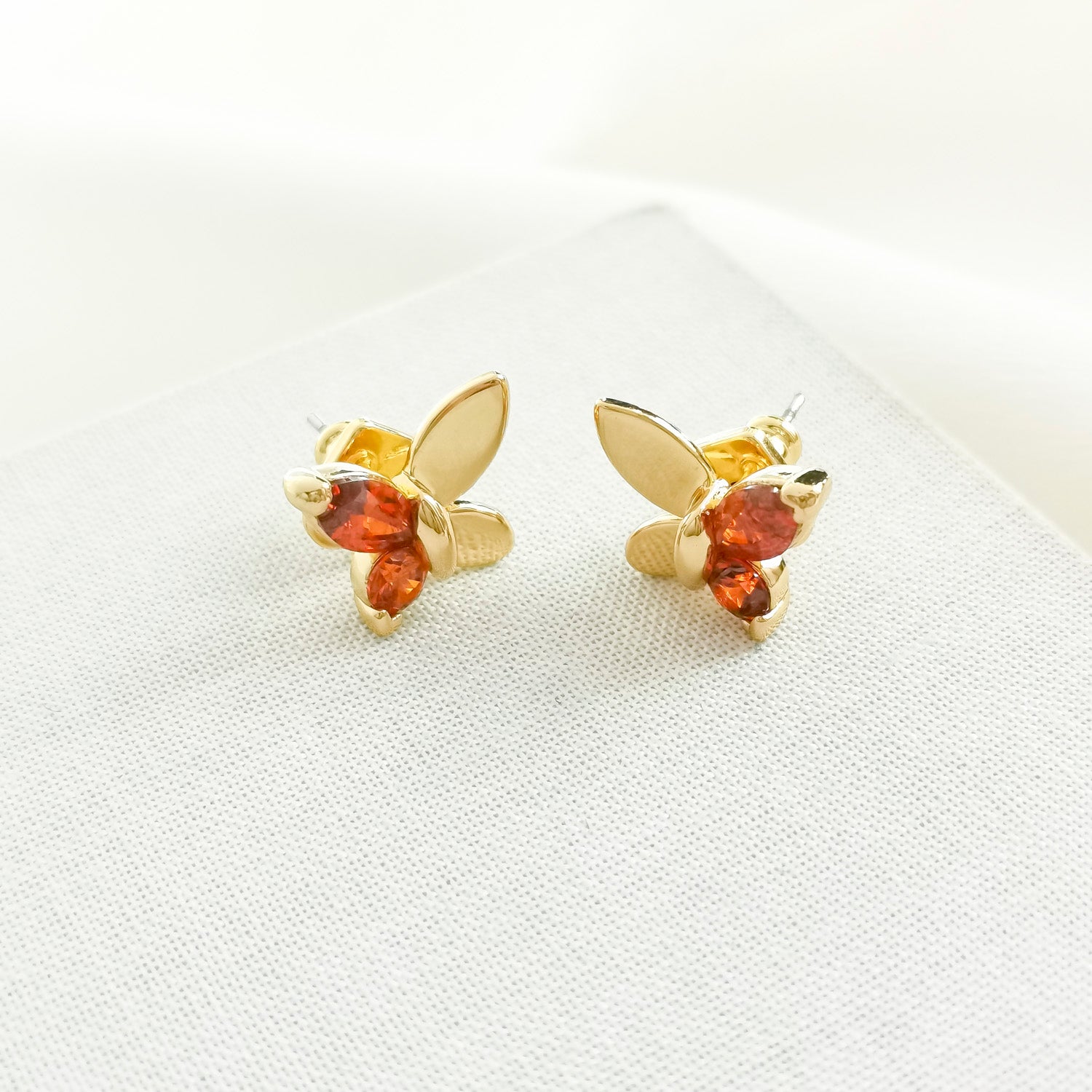 Social Butterfly Gold Red Small Stud Earrings